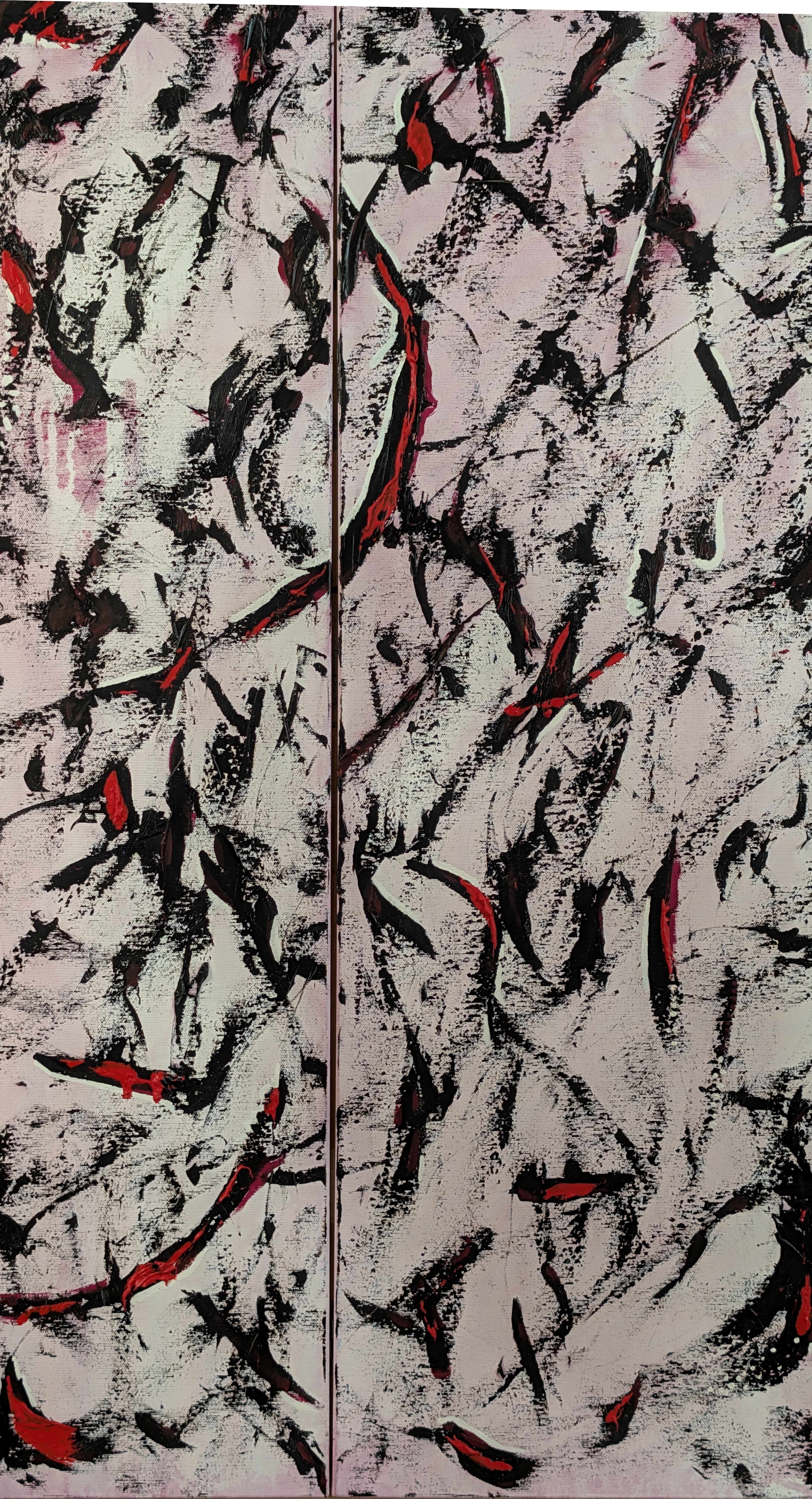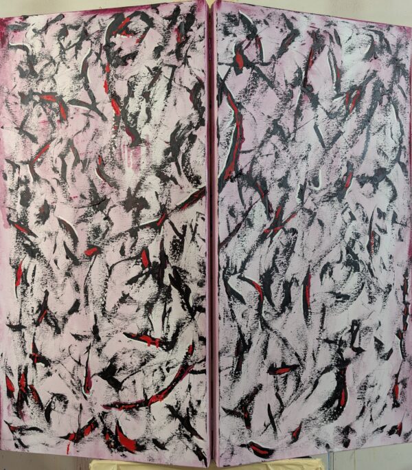 2 tele 50 x 100 unite con cerniere, risulta un quadro 100 x 100
